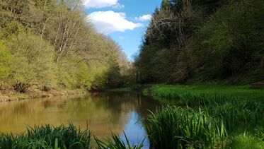 Dietersbachtal nahe Clausen und Donsieders mit mehreren Waldteichen.