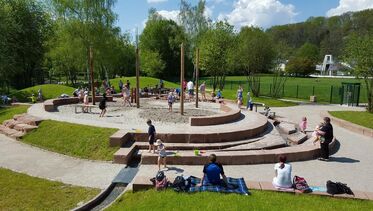 Öffentlicher Park mit großem Abenteuerspielplatz. Vielfältiges Spielangebot, Höhepunkt ist die große Röhrenrutsche und der Wasserspielplatz.