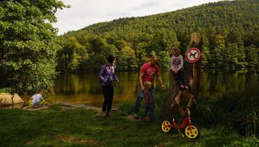 Idyllischer Weiher außerhalb von Hauenstein. Bootsverleih und Angelmöglichkeit. 300 m Fußweg vom Parkplatz Farrenwiese.