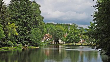 Der Badesee Saarbacherhammer ist ein Mühlenweiher zwischen Fischbach und Ludwigswinkel.