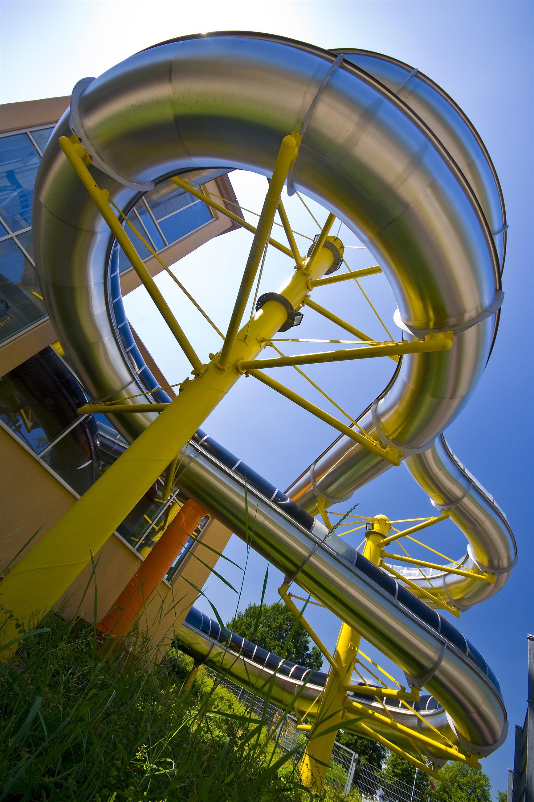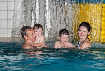 Familienfreundliche Wasser-Erlebniswelt mit Rutsche, Wellenbad, großzügig angelegtem Kinderbereich und großer, moderner Saunalandschaft - Badespaß pur für die ganze Familie.