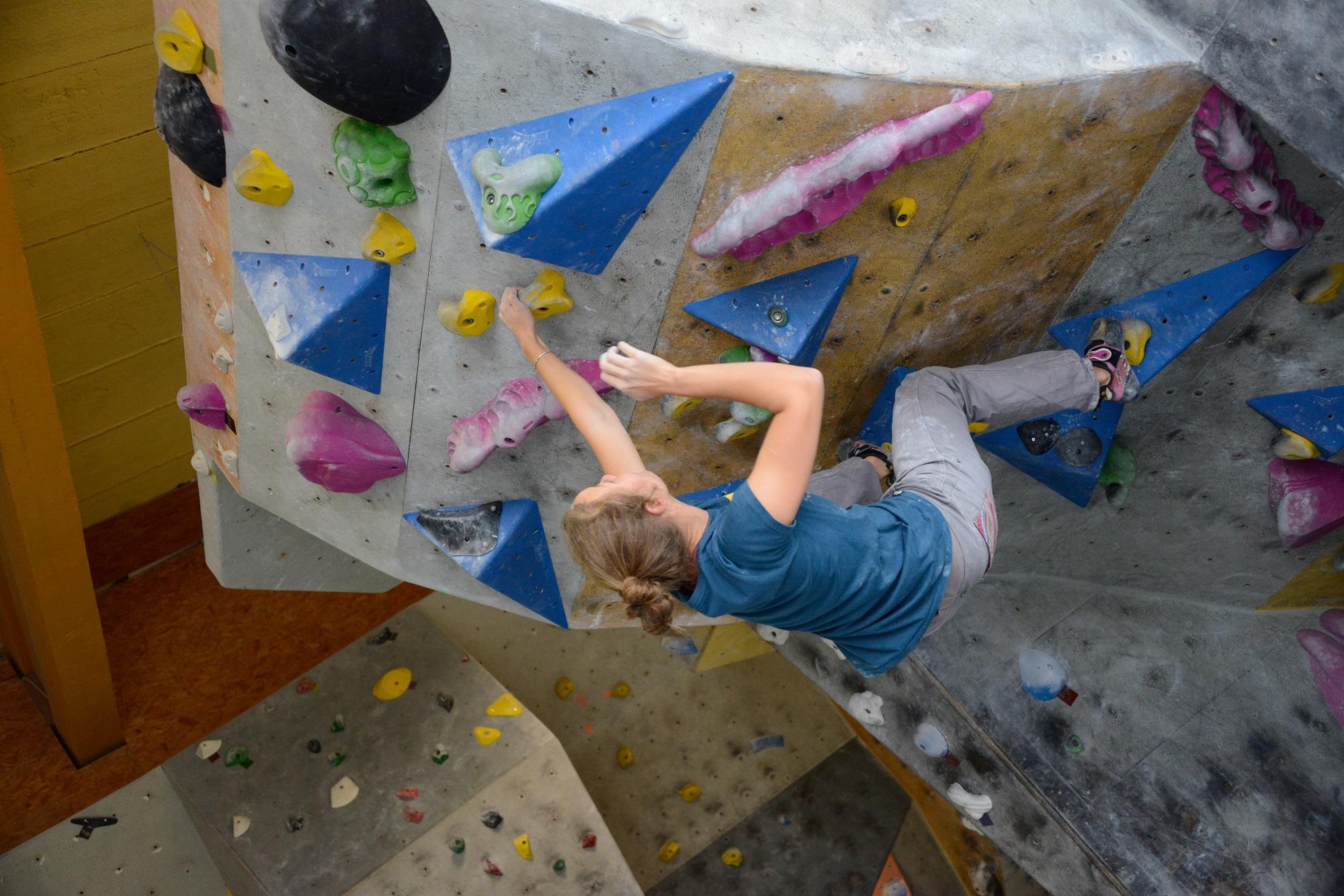 Der Berg ruft! In der Kletterhalle mit mehr als 800 qm Kletterfläche kann man sich so richtig austoben. Die farblich markierten Kletterstrecken haben unterschiedliche Schwierigkeitsstufen von „kinderleicht“ bis „extraschwer“. In einem Einsteiger- oder Familienkurs kann man alle notwendigen Klettertechniken erlernen. Die Ausrüstung kann man vor Ort leihen. Ein großer Boulderbereich mit weichen Matten am Boden dient zur Aufwärmung und ersten Versuchen ohne Seil. Der Gastronomiebereich hält kalte und warme Snacks zur Stärkung bereit.