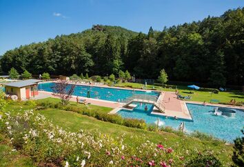 Herzlich willkommen im Wasgaufreibad Hauenstein. Ruhig und herrlich in der idyllischen Felsenlandschaft des Pfälzer Waldes eingebettet, bietet das Wasgaufreibad seinen kleinen und großen Gästen ein unvergleichliches Badeerlebnis. Neben dem 50-Meter-Edelstahlbecken, welches alles Schwimmer erfreut, bietet das Wasgaufreibad ein separates Nichtschwimmerbecken mit Schaukelbucht, Schwallduschen und Massagedüsen. Bei der Sprunganlage (3m und 1m Sprungbrett) kann man sicherlich seinen Mut beweisen. Eine Attraktion ist die pfiffige hangverlegte Großrutsche, die alt und jung begeistert. Für die Kleinsten laden ein Kinderbecken zum Planschen sowie ein großzügiger Wasserspielplatz, ein im Boden eingebautets Trampolin und die neu installierte Seilrutsche zum Spielen ein.