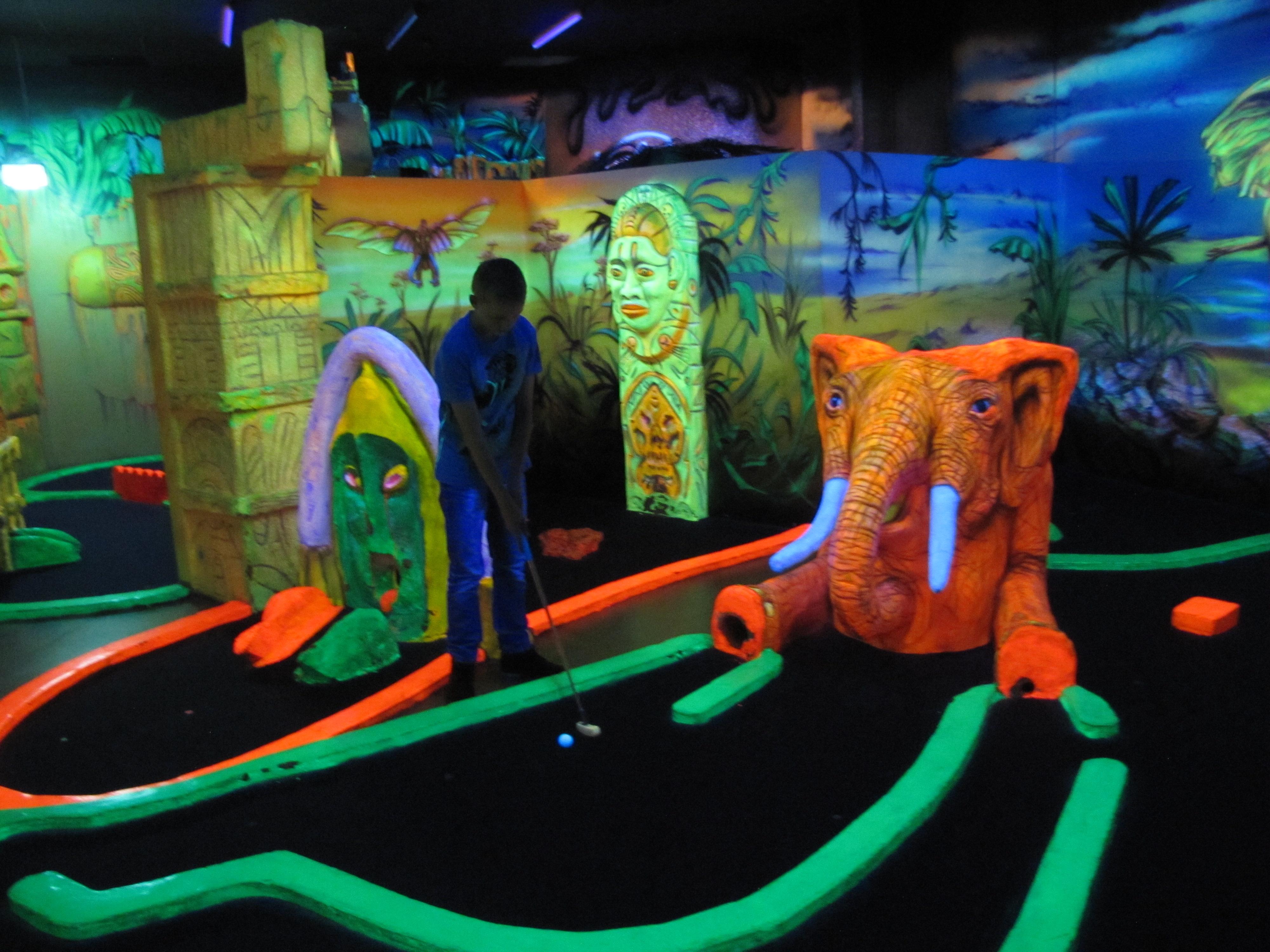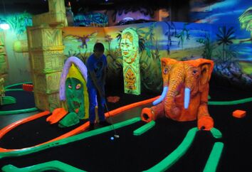 Zwei besondere Angebote erwartet einen in der World of Fun, hier kann man eine Partie Schwarzlicht-Minigolf spielen und in der Bowling-Arena auf speziellen Familienbahnen bowlen.