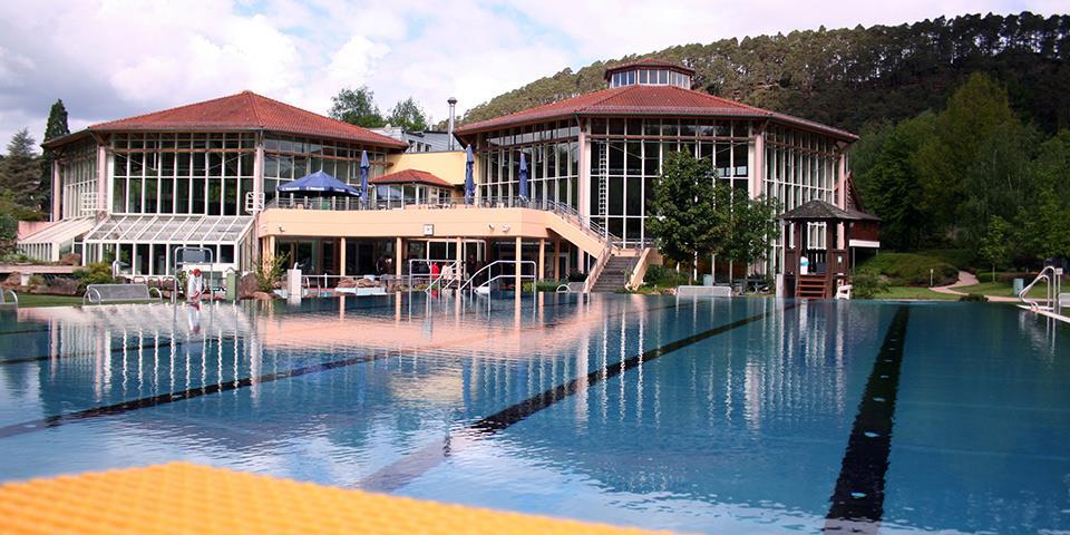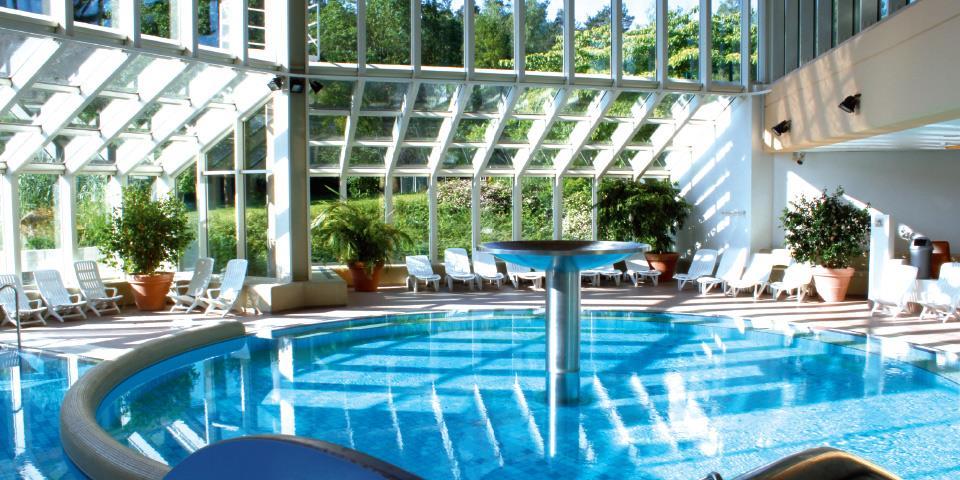 Familien- und Erlebnisbad mit großer Sonnenwiese, Riesenrutsche 45 m, Strömungskanal, Warmsprudelgrotte, Kleinkind-Spielbereich, Freizeitbecken mit Wasserpilz, kombinierter Innen-/Außenbereich, im Sommer großes Außenschwimmerbecken. Finnische 5-Sterne SaunaweltDas Sauna Paradies auf über 7.000 qm wurde bereits zum wiederholten Male mit dem 5 Sterne „Sauna Premium“ Siegel ausgezeichnet. Der auf über 7.000 qm große Saunagarten, mit den verschiedenen Saunen, Biothermium, Kräuterhaus, Dampfbad u.v.m. zählt zu einem der schönsten Saunagärten Europas. Die professionelle Massageabteilung bietet eine ansprechende Auswahl toller Massagen.