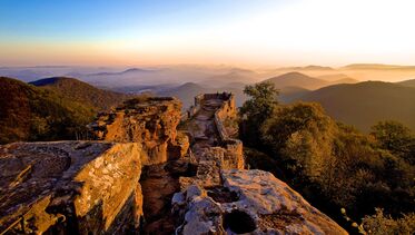 Die Burgruinen beeindrucken durch ihre Lage, meist auf hohen Felsen, und natürlich durch ihre grandiose Aussicht hinab ins Tal oder über das Biosphärenreservat Naturpark Pfälzerwald/ Nordvogesen.
