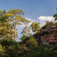 Die Burgruine liegt an der Wilgartswieser Burgen-Tour.