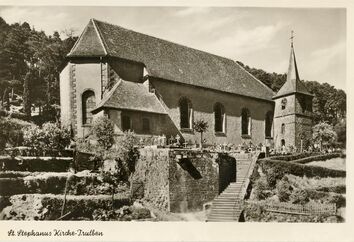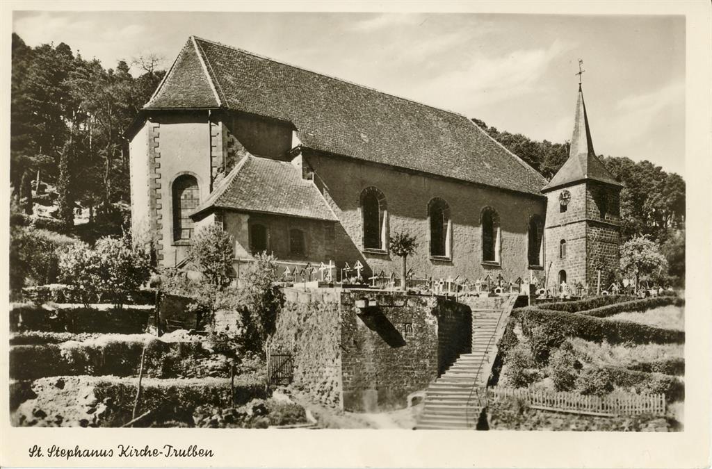 Der schlichte Saalbau der St. Stephanus-Kirche (Hauptstraße in Trulben) zeigt vier Fensterachsen und einen eingezogenen dreiseitig schließenden Chor mit durchlaufendem Dachfirst. An der Ostwand des Schiffes befindet sich eine auf toskanischen Säulen ruhende Empore, deren gefelderte Brüstung im mittleren Teil nach vorne ausschwingt. Von der ursprünglichen Ausstattung haben sich die beiden Seitenaltäre erhalten. Die Kanzel ist angeblich aus Stürzelbronn nach Trulben gekommen, vermutlich um 1750. Der Hochalter wurde bei der Renovierung 1912/15 von der Fa. Vogel aus Bergzabern erstellt. Der barocke Altar von 1769 zeigt ein Altarbild des Kirchenpatrons. Den Zelebrationsaltar schuf in den 70er Jahren Bildhauer Nuding aus Clausen.