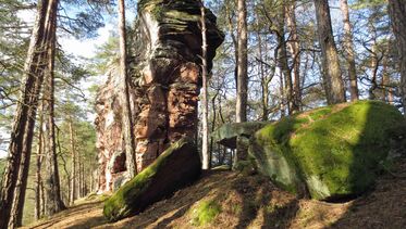 500 m langes Felsmassiv, nordwestlich von Bruchweiler-Bärenbach.