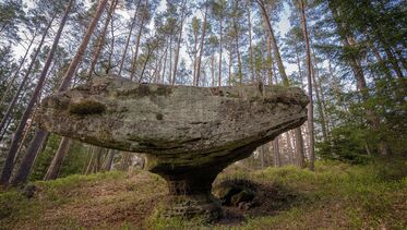 Ein kleiner markanter Pilzfelsen aus Buntsandstein am Wegesrand des Premiumwanderweges Eulenfels-Tour. Ähnlich seinem großen Bruder dem bekannteren Teufelstisch bei Hinterweidenthal. Ganzjährig frei […]