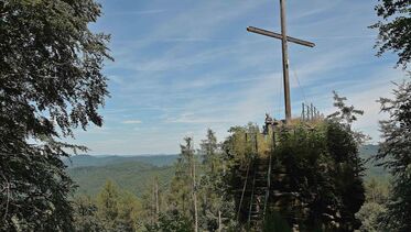 Schön ruhig gelegener Fels mit herrlichem Panoramablick auf das Steinbach Tal (Elsass).