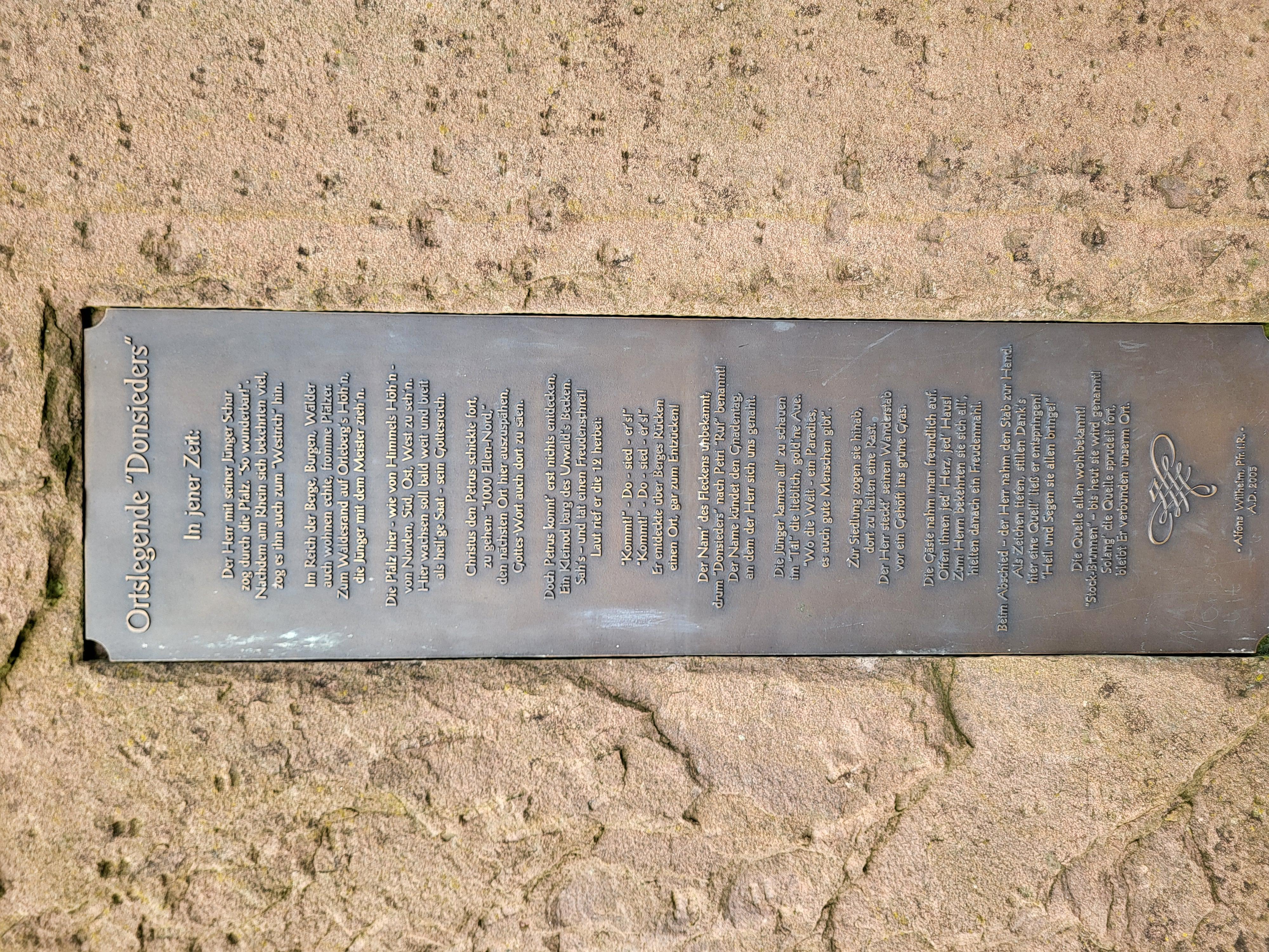 Der am Pfälzer Waldpfad und am Panoramaweg des Gräfensteiner Landes gelegene, markante Sandstein-Monolith auf dem Orleberg oberhalb von Donsieders beeindruckt mit seinen 8 Metern Höhe sowie etwa 55 Tonnen Gewicht und ist aufgrund dieser Dimensionen schon von weithin sichtbar. Er wurde vom verstorbenen ehemaligen Gemeindepfarrer Alfons Wilhelm gestiftet. Gemütliche Sitzgruppen und Liegebänke rund um diesen Obelisken laden zum Rasten, Verweilen und die Seele baumeln lassen ein. An diesem magischen Ort, inmitten von Feldern und Wiesen gelegen, hat man einen grandiosen Ausblick auf die Sickinger Höhe, bei guter Sicht sogar bis ins Saarland. Besonders schön sind hier auch die Sonnenuntergänge. Die neu installierte Sonnenuhr stellt ein weiteres Highlight an diesem schönen Platz dar. Nur wenige Meter entfernt kann im Übrigen auch noch ein altes Feldkreuz besichtigt werden, das malerisch unter einer Baumgruppe steht.