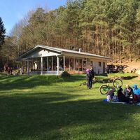 Unterhalb der Burg Berwartstein bei Erlenbach liegt der idyllische Badesee Seehof mit bewirtschaftetem Kiosk.