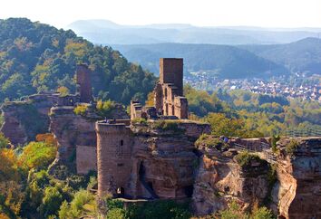 Auf fünf nebeneinander stehenden Buntsandsteinfelsen erheben sich die Ruinen der drei Wehranlagen. Urkundlich werden die Burgen bereits in der ersten Hälfte des 12. Jahrhunderts erwähnt. Die Burgengruppe zählt mit fast 200 Metern Länge zu den größten mittelalterlichen Wehranlagen der Pfalz. Im Dreißigjährigen Krieg wurden die Burgen weitgehend zerstört. Im Burgmuseum der Burgengruppe gibt es interessante Funde zu sehen.