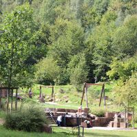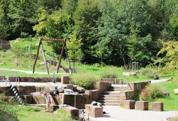 Riech- und Fühlpfad, Höhlengang, Freiluftklassenzimmer, Quelle mit Bachlauf, Horchbäume, Barfußpfad, Sandsteinspielzone sowie Birkenhain mit Ruhezone