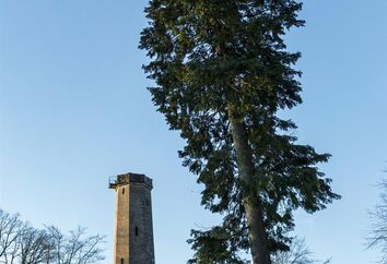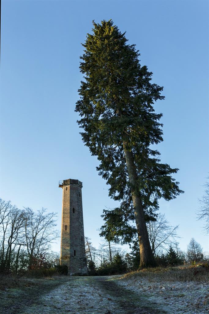 Durch den grünen Baldachin der Buchen, Eichen und Eschen steigt man empor zum Gipfel des Berges, den ein hölzerner Turm von erstaunlicher Höhe krönt – der ‚Dillegraf‘ genannt. Aus gewaltigen Balken gezimmert trägt er in schwindelnder Höhe ein Bretterhäuschen, eine Art Taubenschlag. Er ward von Napoleon als Telegraphenturm errichtet, um Paris mit Mainz in Verbindung zu setzen. Eine Bretterstiege führt hinauf, und eine unermeßliche Aussicht nach allen Seiten tut sich oben auf, vielleicht einzig in ihrer Art. (Becker 1858, S. 520)