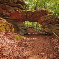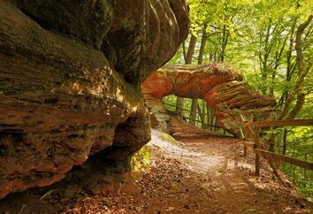 Das Felsentor ist ein imposantes "Naturbauwerk". Ein Felsgebilde aus Buntsandstein, ein natürlicher Felsdurchbruch, dessen Öffnung eine Höhe von etwa 1,80 Meter aufweist. Es befindet sich auf nicht weit vom Forsthaus Beckenhof und erweckt den Eindruck eines Torbogens, nördlich der Waldgaststätte Beckenhof. Es liegt direkt am Premiumweg Felsenwald. Folgen Sie ab dem ausgeschilderten Premiumweg ab dem Standort Beckenhof zum Felsentor.