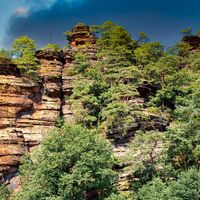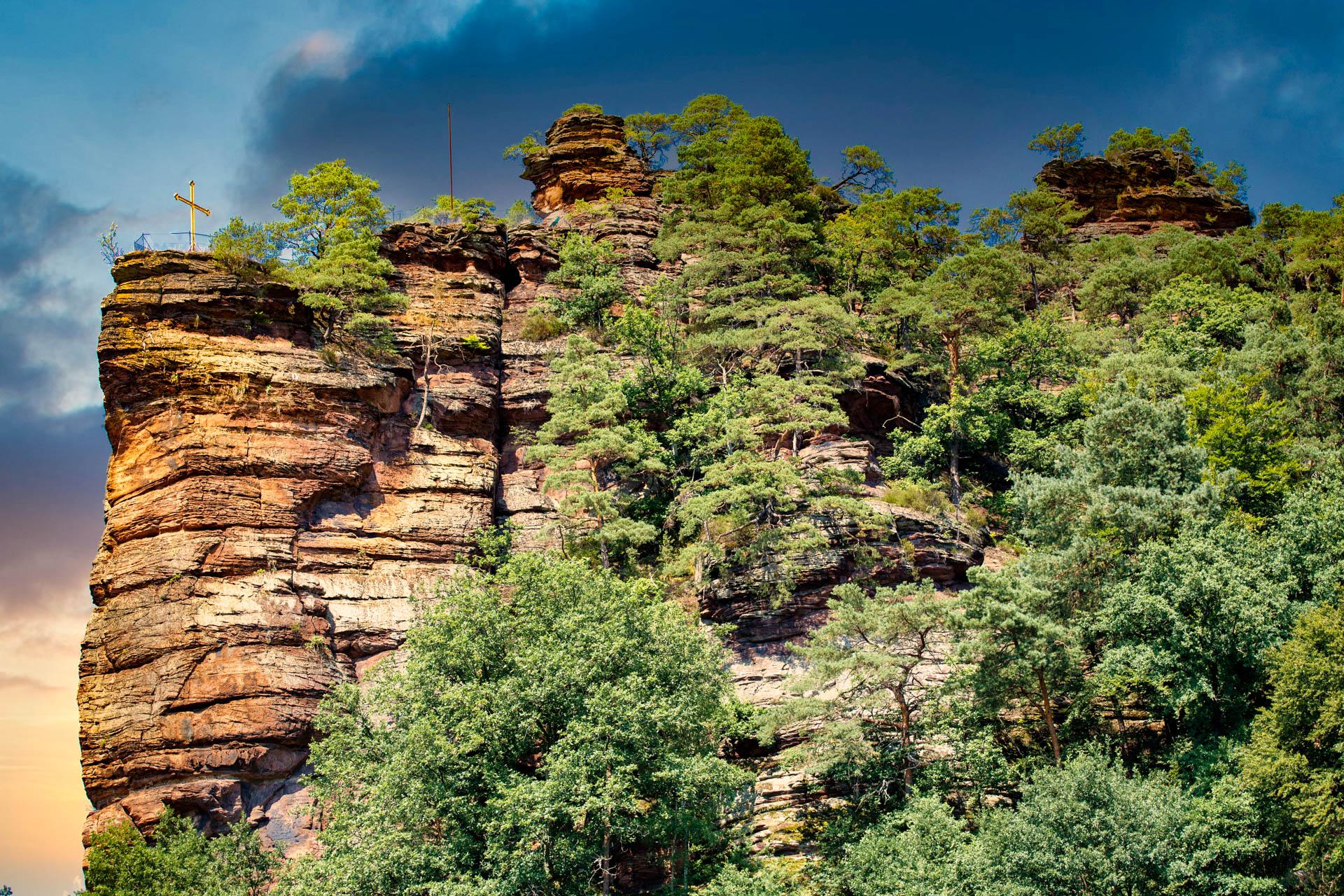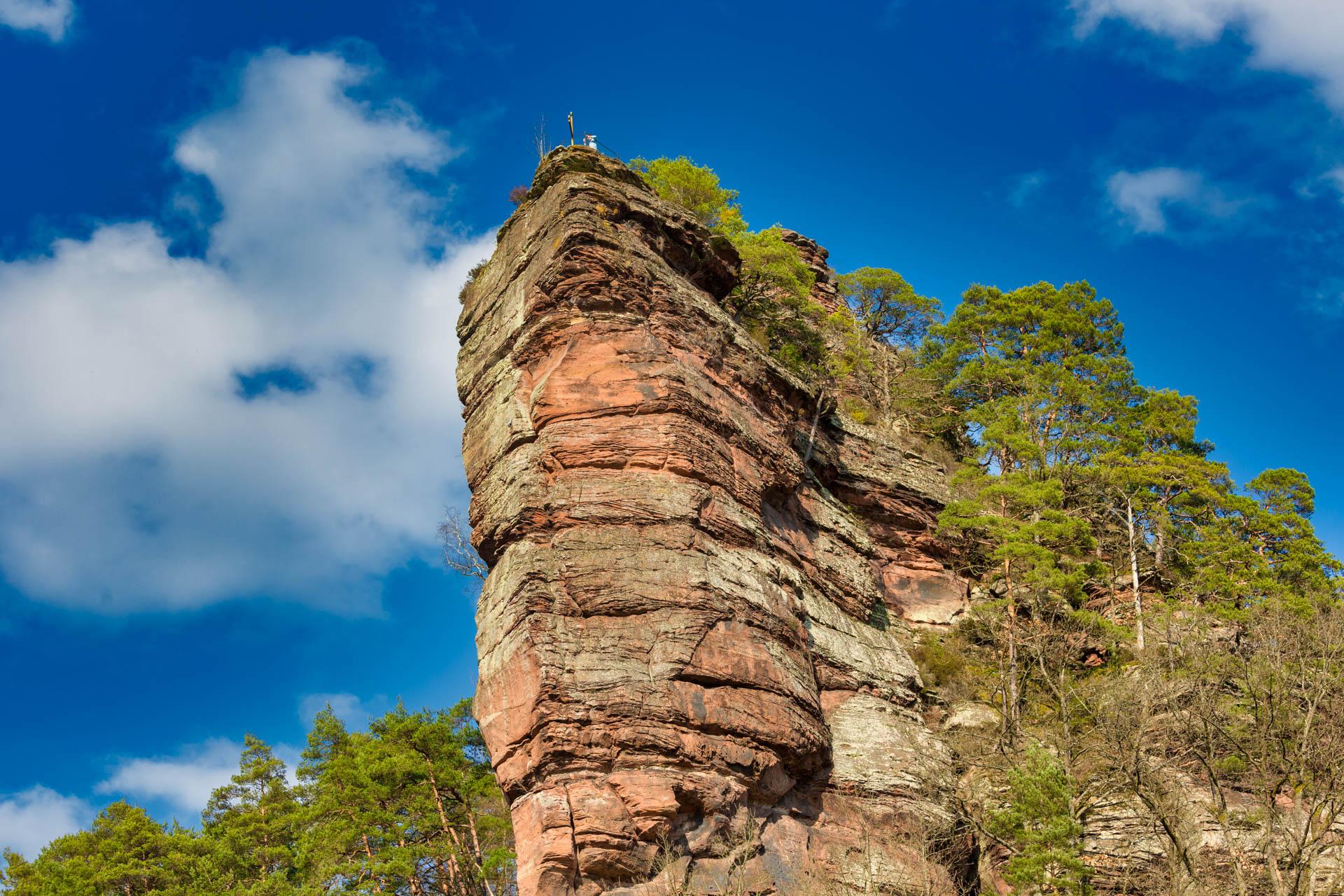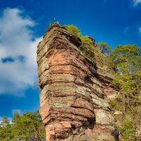 Ca. 70 m hohes Felsmassiv mitten in der Stadt Dahn. Von der Aussichtskanzel am Gipfelkreuz hat man eine tolle Aussicht auf die Kurstadt Dahn, das mächtige Burgenmassiv "Alt-Dahn, Grafendahn und Tanstein" sowie das Umland.
