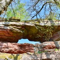 Herrlicher Aussichtsfelsen mit abgesicherter Aussichtskanzel, am östlichen Ortsrand von Ludwigswinkel.