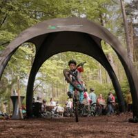 Kommend vom Trail “Storzekiller” führt euch der andere Arm der Weggabelung in den Trail „Hartplatzhölle“ (Schwierigkeitsgrad: leicht). Das ist die im Vergleich zu Elite Kranzkuchepädle anfängerfreundlichere Variante mit sanfteren Kurven und technisch überschaubaren Passagen. Auch hier kommt ihr gut in „Flow“ und landet am Rand der Sportplatzanlage. Länge: 440 Meter; Abstieg: 50 Meter