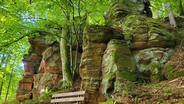 500 m langes Felsmassiv, nordwestlich von Bruchweiler-Bärenbach.