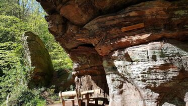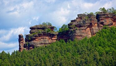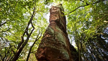 Teufelstisch, Braut & Bräutigam, Jungfernsprung… die Namen und Legenden die sich um sie ranken sind fast so bizarr wie ihre Erscheinung. Der Bundsandstein und die daraus bestehenden Felstürme bestimmen die Landschaft des Pfälzerwalds. Entstanden sind sie im Perm und Trias vor über 250 Millionen Jahren, als sich über 500 m mächtige Sedimentschichten im Gebiet des heutigen Pfälzerwaldes abgelagert haben. Durch Beimengungen von Eisenoxid erhielten sie ihre charakteristische rote Farbe. Ihre heutige Form erhielten sie durch die Erosion der letzten 5 Millionen Jahre. Im Mittelalter dienten sie nicht nur als Sockel oder Fundament für die unzähligen Burgen, sondern wurden auf Grund ihrer leichten Bearbeitbarkeit, häufig in den Burgbau mit einbezogen.