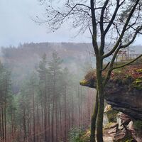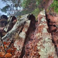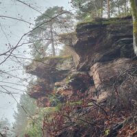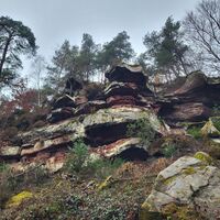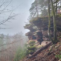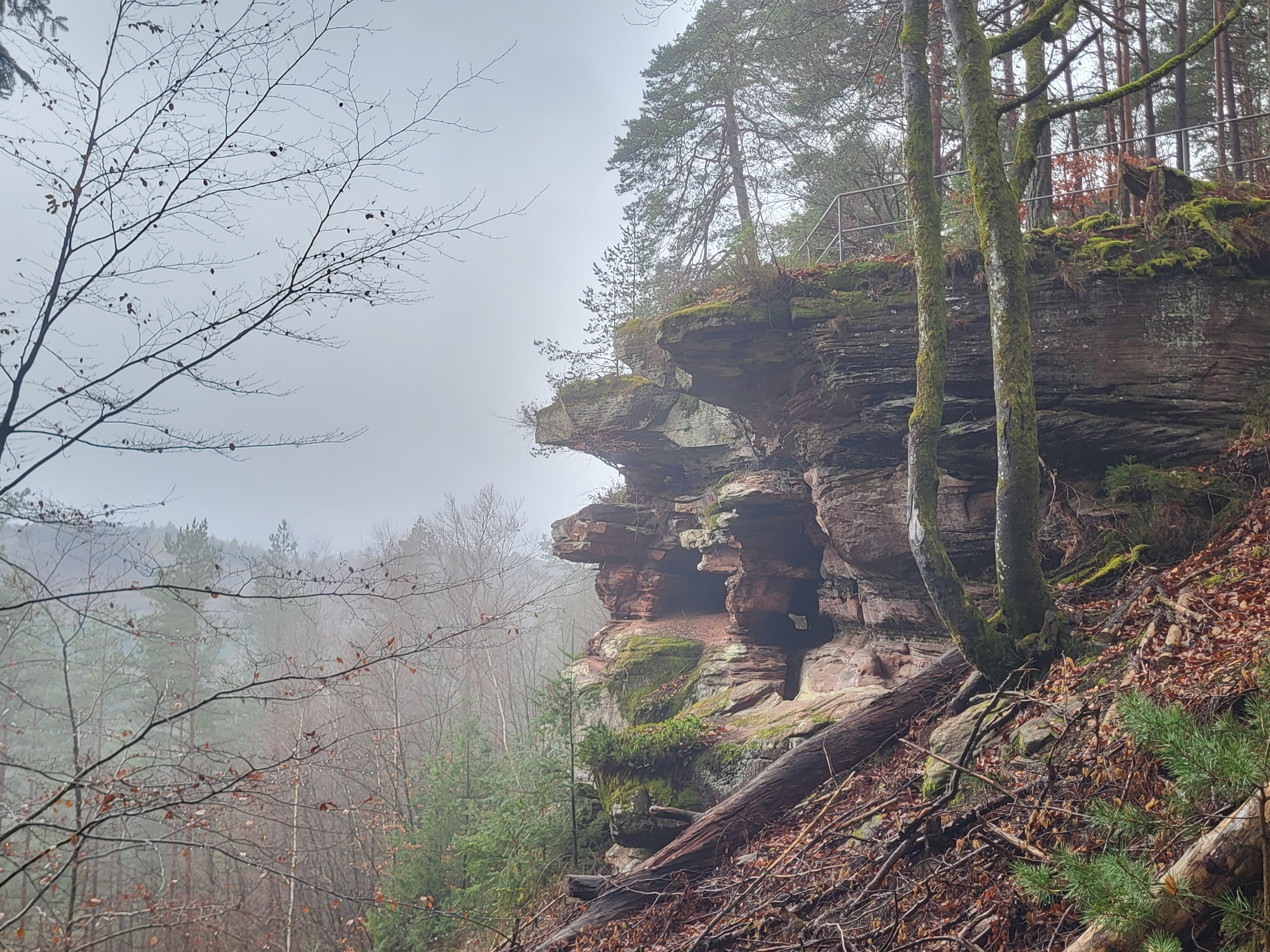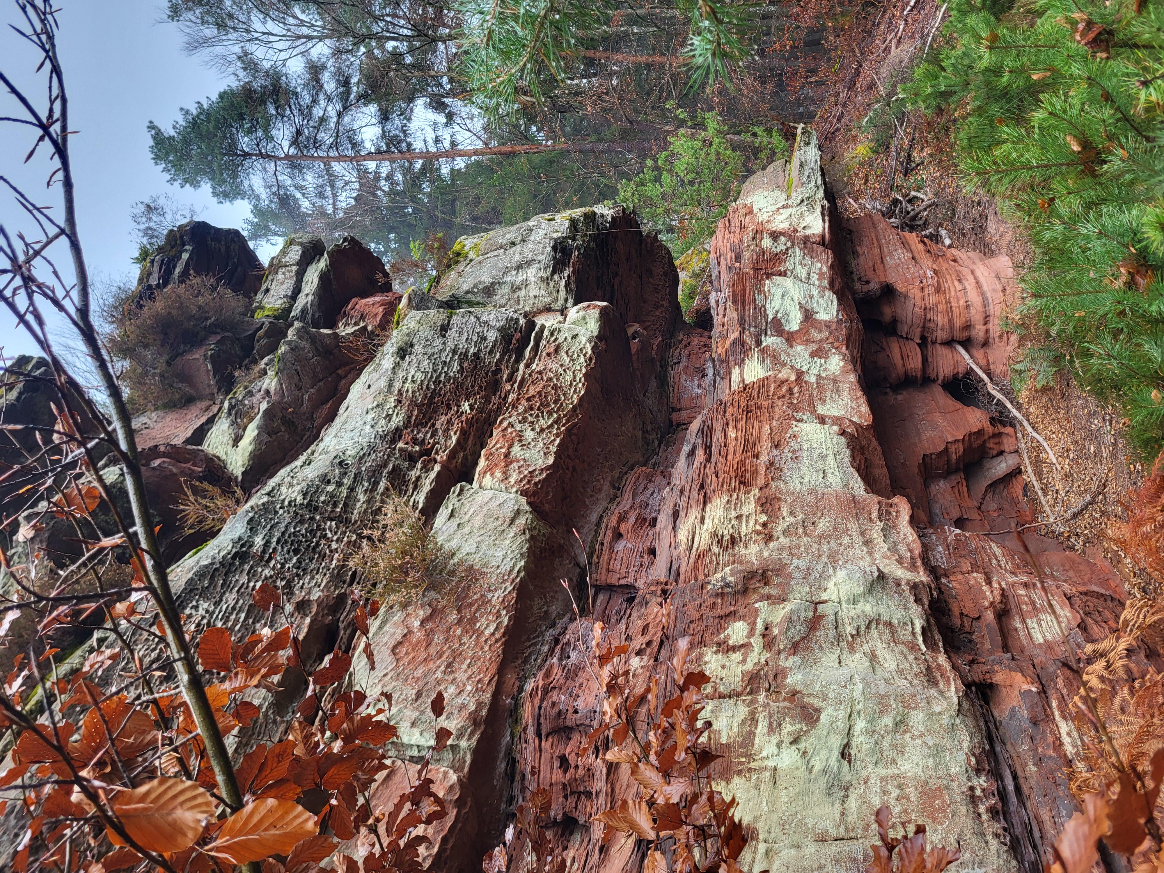 Teufelstisch, Braut & Bräutigam, Jungfernsprung… die Namen und Legenden die sich um sie ranken sind fast so bizarr wie ihre Erscheinung. Der Bundsandstein und die daraus bestehenden Felstürme bestimmen die Landschaft des Pfälzerwalds. Entstanden sind sie im Perm und Trias vor über 250 Millionen Jahren, als sich über 500 m mächtige Sedimentschichten im Gebiet des heutigen Pfälzerwaldes abgelagert haben. Durch Beimengungen von Eisenoxid erhielten sie ihre charakteristische rote Farbe. Ihre heutige Form erhielten sie durch die Erosion der letzten 5 Millionen Jahre. Im Mittelalter dienten sie nicht nur als Sockel oder Fundament für die unzähligen Burgen, sondern wurden auf Grund ihrer leichten Bearbeitbarkeit, häufig in den Burgbau mit einbezogen.