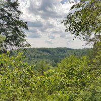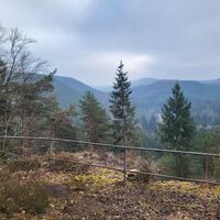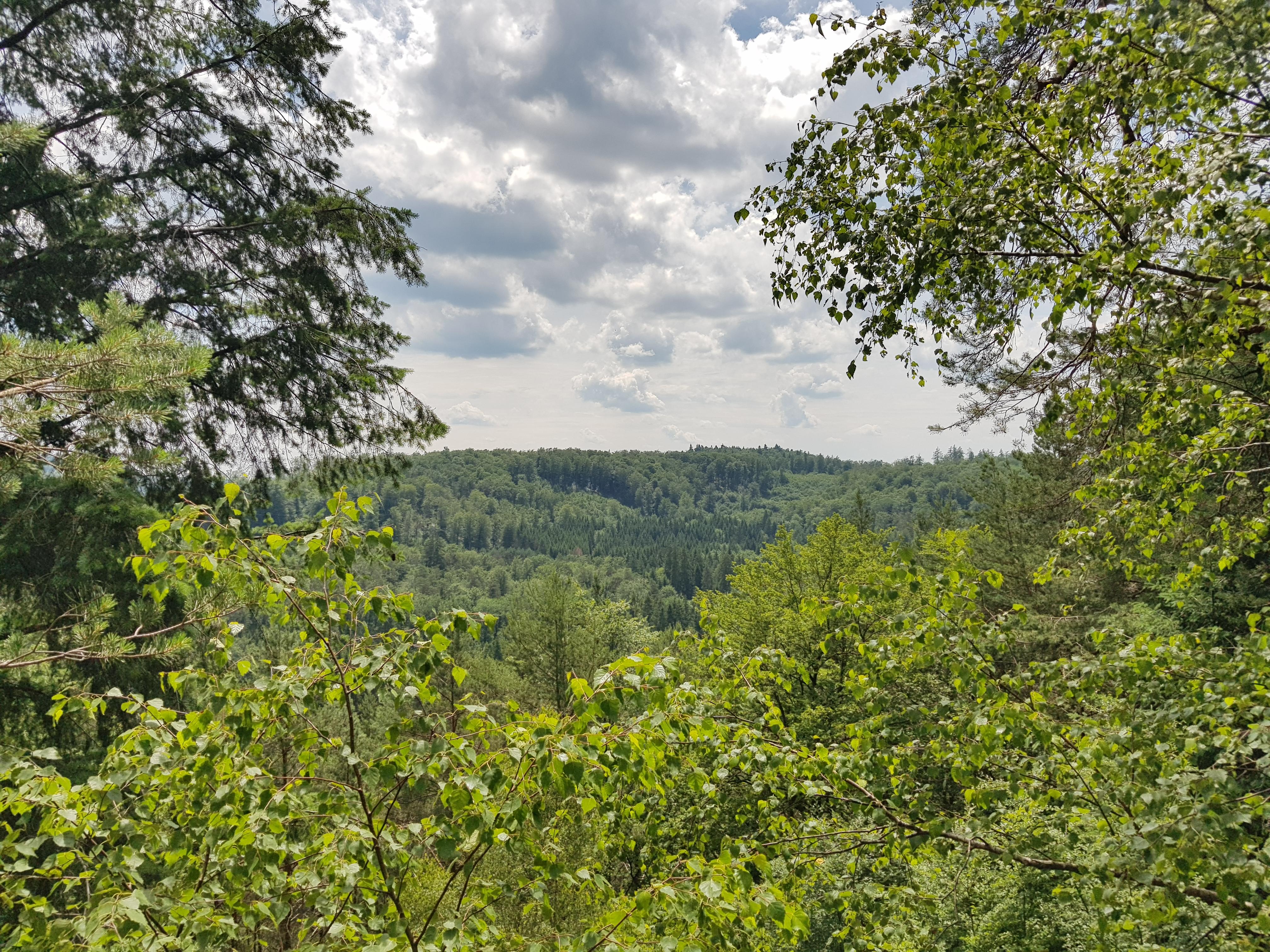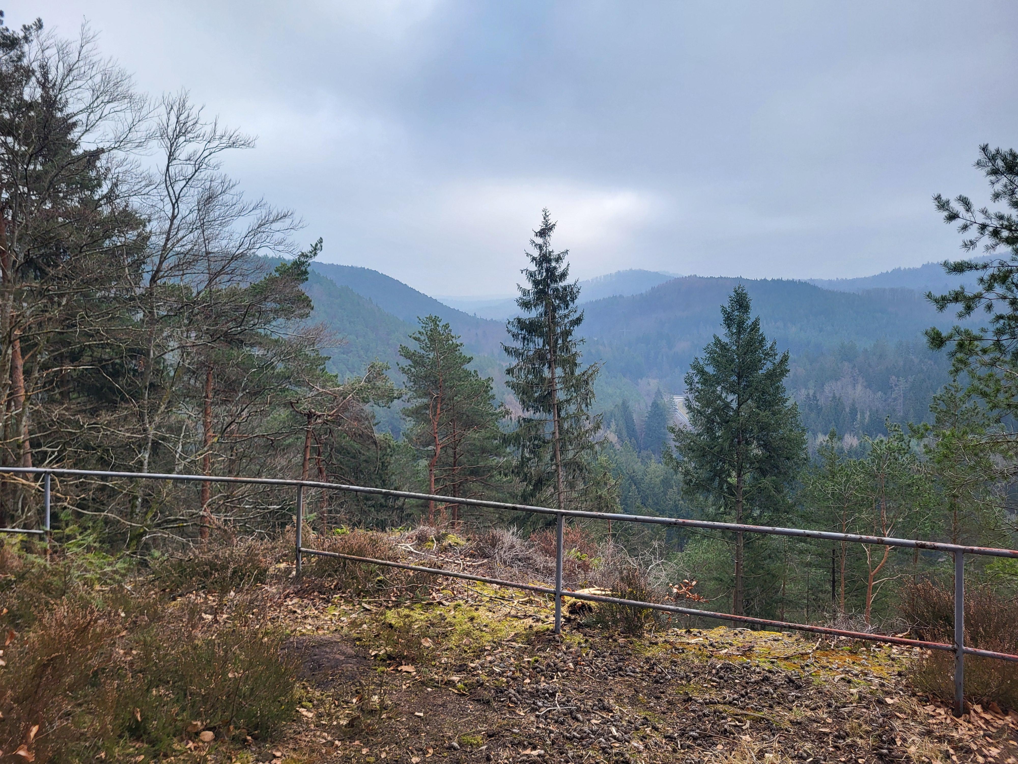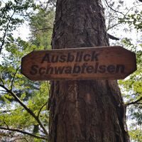 Der mächtige Schwabfelsen liegt zwischen Clausen und Merzalben an der Clausenseetour des Gräfensteiner Landes. Er bietet auf seinem Felsplateau eine wunderbare Aussicht.
