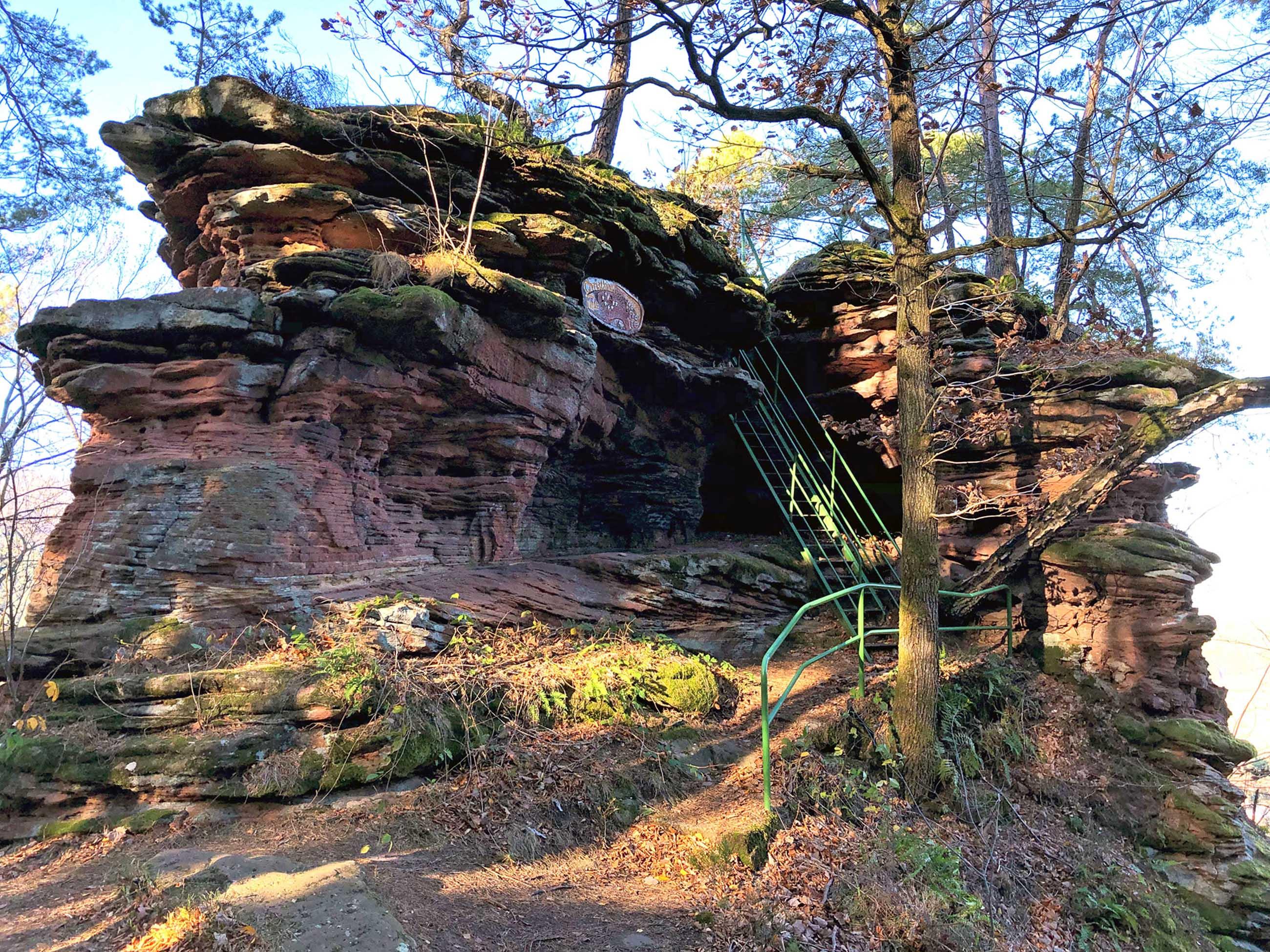 Teufelstisch, Braut & Bräutigam, Jungfernsprung… die Namen und Legenden die sich um sie ranken sind fast so bizarr wie ihre Erscheinung. Der Bundsandstein und die daraus bestehenden Felstürme bestimmen die Landschaft des Pfälzerwalds. Entstanden sind sie im Perm und Trias vor über 250 Millionen Jahren, als sich über 500 m mächtige Sedimentschichten im Gebiet des heutigen Pfälzerwaldes abgelagert haben. Durch Beimengungen von Eisenoxid erhielten sie ihre charakteristische rote Farbe. Ihre heutige Form erhielten sie durch die Erosion der letzten 5 Millionen Jahre. Im Mittelalter dienten sie nicht nur als Sockel oder Fundament für die unzähligen Burgen, sondern wurden auf Grund ihrer leichten Bearbeitbarkeit, häufig in den Burgbau mit einbezogen.