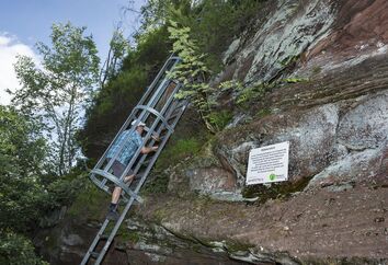 Teufelstisch, Braut & Bräutigam, Jungfernsprung… die Namen und Legenden die sich um sie ranken sind fast so bizarr wie ihre Erscheinung. Der Bundsandstein und die daraus bestehenden Felstürme bestimmen die Landschaft des Pfälzerwalds. Entstanden sind sie im Perm und Trias vor über 250 Millionen Jahren, als sich über 500 m mächtige Sedimentschichten im Gebiet des heutigen Pfälzerwaldes abgelagert haben. Durch Beimengungen von Eisenoxid erhielten sie ihre charakteristische rote Farbe. Ihre heutige Form erhielten sie durch die Erosion der letzten 5 Millionen Jahre. Im Mittelalter dienten sie nicht nur als Sockel oder Fundament für die unzähligen Burgen, sondern wurden auf Grund ihrer leichten Bearbeitbarkeit, häufig in den Burgbau mit einbezogen.
