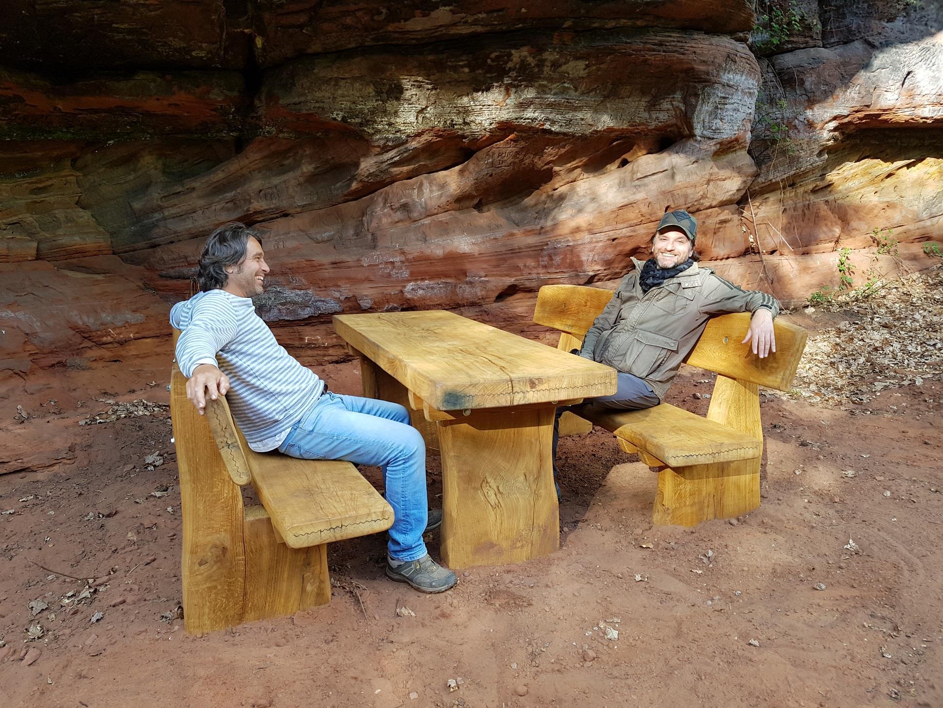 Teufelstisch, Braut & Bräutigam, Jungfernsprung… die Namen und Legenden die sich um sie ranken sind fast so bizarr wie ihre Erscheinung. Der Bundsandstein und die daraus bestehenden Felstürme bestimmen die Landschaft des Pfälzerwalds. Entstanden sind sie im Perm und Trias vor über 250 Millionen Jahren, als sich über 500 m mächtige Sedimentschichten im Gebiet des heutigen Pfälzerwaldes abgelagert haben. Durch Beimengungen von Eisenoxid erhielten sie ihre charakteristische rote Farbe. Ihre heutige Form erhielten sie durch die Erosion der letzten 5 Millionen Jahre. Im Mittelalter dienten sie nicht nur als Sockel oder Fundament für die unzähligen Burgen, sondern wurden auf Grund ihrer leichten Bearbeitbarkeit, häufig in den Burgbau mit einbezogen.