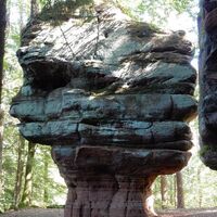 Ein markanter Tischfelsen, der durch Erosionsvorgänge einen relativ dünnen Felsfuß besitzt, auf dem der größere obere Teil des Felsbrockens ruht. Das Felsgebilde wirkt wie eine Kanzel. Dieser Eindruck wird durch die Lage an der Spitze eines lang gezogenen Felsvorsprungs verstärkt.