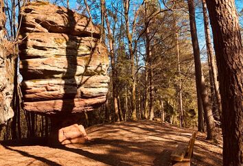 Teufelstisch, Braut & Bräutigam, Jungfernsprung… die Namen und Legenden die sich um sie ranken sind fast so bizarr wie ihre Erscheinung. Der Bundsandstein und die daraus bestehenden Felstürme bestimmen die Landschaft des Pfälzerwalds. Entstanden sind sie im Perm und Trias vor über 250 Millionen Jahren, als sich über 500 m mächtige Sedimentschichten im Gebiet des heutigen Pfälzerwaldes abgelagert haben. Durch Beimengungen von Eisenoxid erhielten sie ihre charakteristische rote Farbe. Ihre heutige Form erhielten sie durch die Erosion der letzten 5 Millionen Jahre. Im Mittelalter dienten sie nicht nur als Sockel oder Fundament für die unzähligen Burgen, sondern wurden auf Grund ihrer leichten Bearbeitbarkeit, häufig in den Burgbau mit einbezogen.
