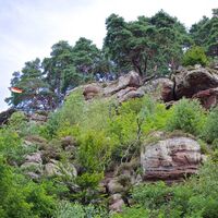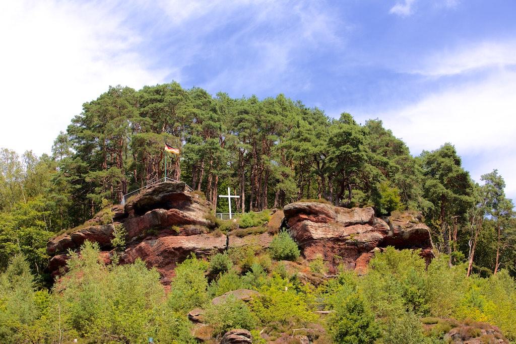 Erreichbar über die Wanderwege "Sandhasen-Tour" (ab Trualbhalle) oder "Krappen(höhle)-Tour" (ab Vinningen; Weg Nr. 7).
