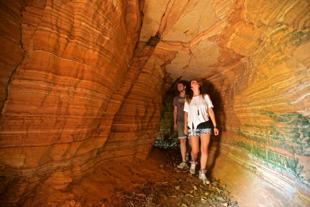 Teufelstisch, Braut & Bräutigam, Jungfernsprung… die Namen und Legenden die sich um sie ranken sind fast so bizarr wie ihre Erscheinung. Der Bundsandstein und die daraus bestehenden Felstürme bestimmen die Landschaft des Pfälzerwalds. Entstanden sind sie im Perm und Trias vor über 250 Millionen Jahren, als sich über 500 m mächtige Sedimentschichten im Gebiet des heutigen Pfälzerwaldes abgelagert haben. Durch Beimengungen von Eisenoxid erhielten sie ihre charakteristische rote Farbe. Ihre heutige Form erhielten sie durch die Erosion der letzten 5 Millionen Jahre. Im Mittelalter dienten sie nicht nur als Sockel oder Fundament für die unzähligen Burgen, sondern wurden auf Grund ihrer leichten Bearbeitbarkeit, häufig in den Burgbau mit einbezogen.