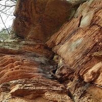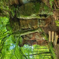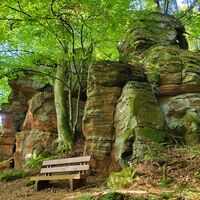 Teufelstisch, Braut & Bräutigam, Jungfernsprung… die Namen und Legenden die sich um sie ranken sind fast so bizarr wie ihre Erscheinung. Der Bundsandstein und die daraus bestehenden Felstürme bestimmen die Landschaft des Pfälzerwalds. Entstanden sind sie im Perm und Trias vor über 250 Millionen Jahren, als sich über 500 m mächtige Sedimentschichten im Gebiet des heutigen Pfälzerwaldes abgelagert haben. Durch Beimengungen von Eisenoxid erhielten sie ihre charakteristische rote Farbe. Ihre heutige Form erhielten sie durch die Erosion der letzten 5 Millionen Jahre. Im Mittelalter dienten sie nicht nur als Sockel oder Fundament für die unzähligen Burgen, sondern wurden auf Grund ihrer leichten Bearbeitbarkeit, häufig in den Burgbau mit einbezogen.