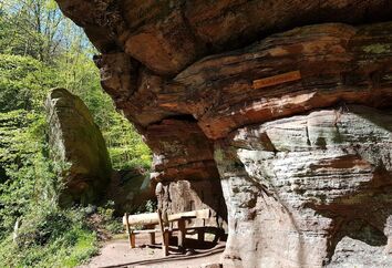 Teufelstisch, Braut & Bräutigam, Jungfernsprung… die Namen und Legenden die sich um sie ranken sind fast so bizarr wie ihre Erscheinung. Der Bundsandstein und die daraus bestehenden Felstürme bestimmen die Landschaft des Pfälzerwalds. Entstanden sind sie im Perm und Trias vor über 250 Millionen Jahren, als sich über 500 m mächtige Sedimentschichten im Gebiet des heutigen Pfälzerwaldes abgelagert haben. Durch Beimengungen von Eisenoxid erhielten sie ihre charakteristische rote Farbe. Ihre heutige Form erhielten sie durch die Erosion der letzten 5 Millionen Jahre. Im Mittelalter dienten sie nicht nur als Sockel oder Fundament für die unzähligen Burgen, sondern wurden auf Grund ihrer leichten Bearbeitbarkeit, häufig in den Burgbau mit einbezogen.