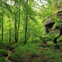 Man erreicht den Kuhfelsen im Übrigen auch über die beiden, etwas breiteren Talwege vom Wanderparkplatz am Hirschbrunnen aus, der sich an der L497 zwischen Rodalben und Münchweiler/Rodalb befindet.
