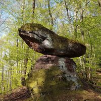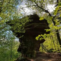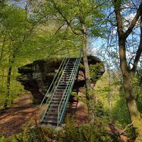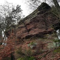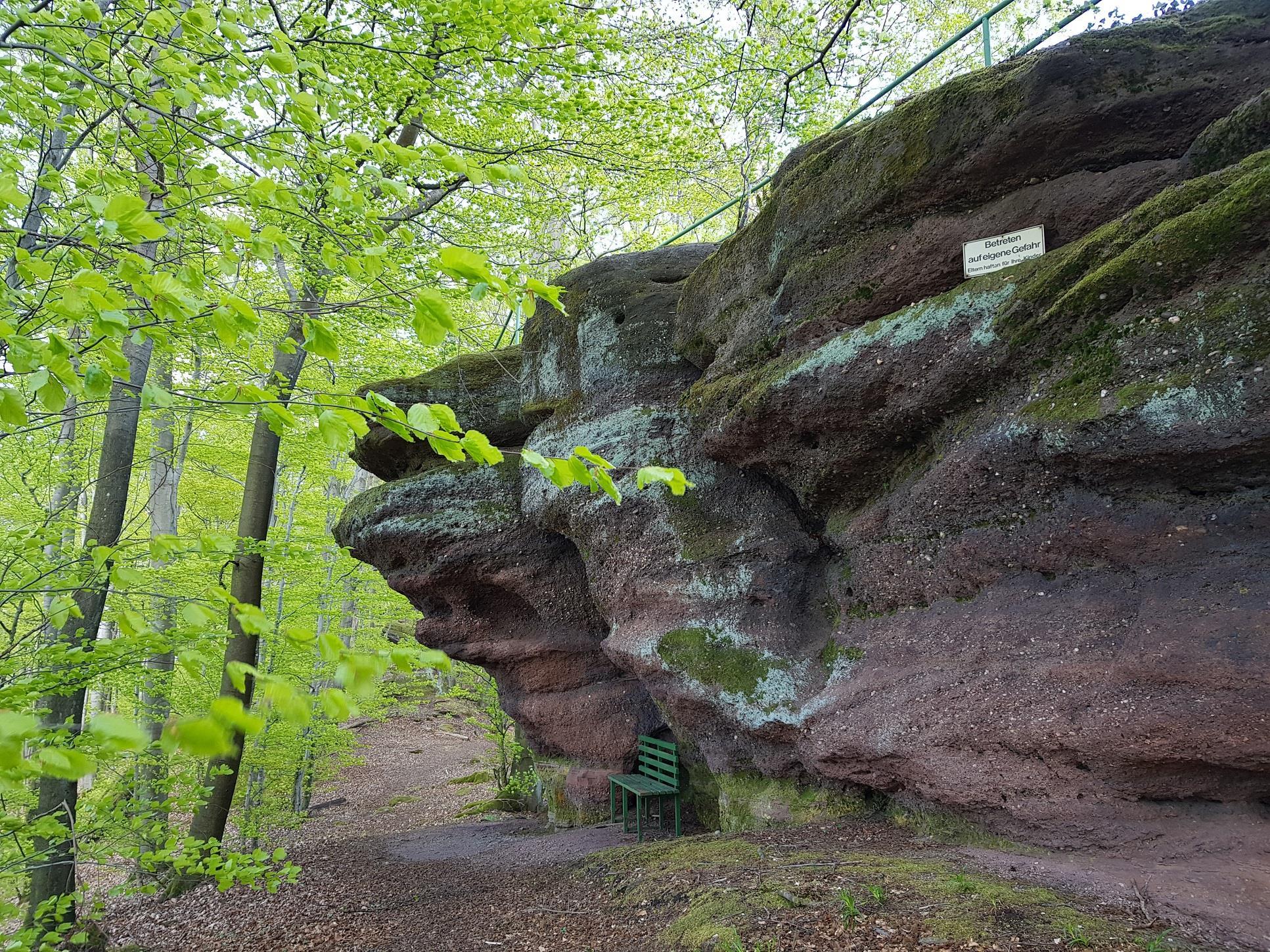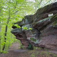 Teufelstisch, Braut & Bräutigam, Jungfernsprung… die Namen und Legenden die sich um sie ranken sind fast so bizarr wie ihre Erscheinung. Der Bundsandstein und die daraus bestehenden Felstürme bestimmen die Landschaft des Pfälzerwalds. Entstanden sind sie im Perm und Trias vor über 250 Millionen Jahren, als sich über 500 m mächtige Sedimentschichten im Gebiet des heutigen Pfälzerwaldes abgelagert haben. Durch Beimengungen von Eisenoxid erhielten sie ihre charakteristische rote Farbe. Ihre heutige Form erhielten sie durch die Erosion der letzten 5 Millionen Jahre. Im Mittelalter dienten sie nicht nur als Sockel oder Fundament für die unzähligen Burgen, sondern wurden auf Grund ihrer leichten Bearbeitbarkeit, häufig in den Burgbau mit einbezogen.
