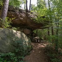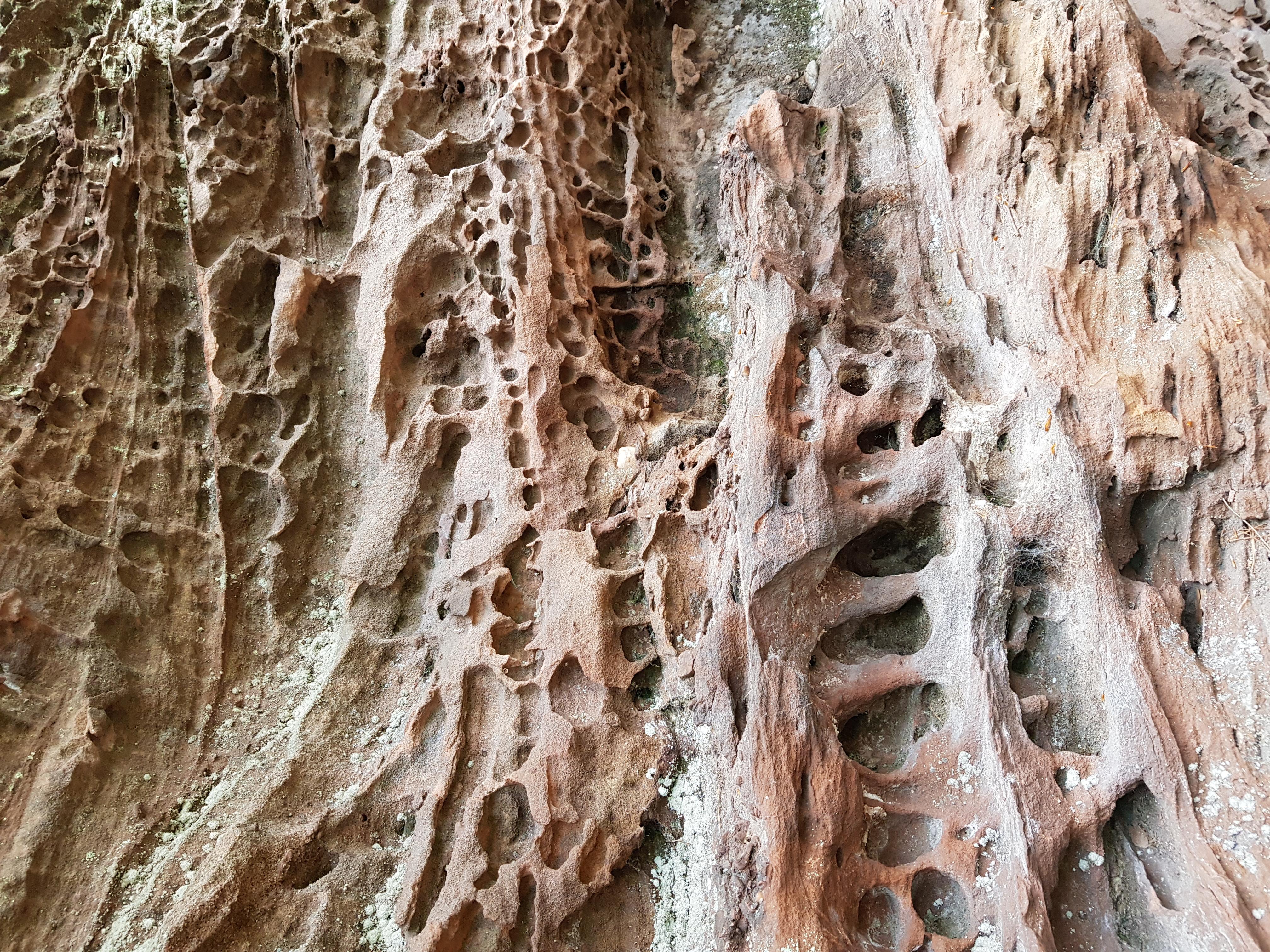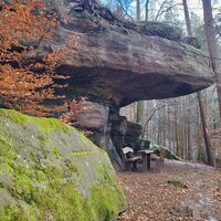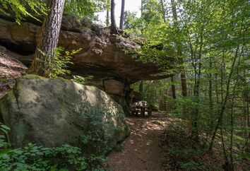 Teufelstisch, Braut & Bräutigam, Jungfernsprung… die Namen und Legenden die sich um sie ranken sind fast so bizarr wie ihre Erscheinung. Der Bundsandstein und die daraus bestehenden Felstürme bestimmen die Landschaft des Pfälzerwalds. Entstanden sind sie im Perm und Trias vor über 250 Millionen Jahren, als sich über 500 m mächtige Sedimentschichten im Gebiet des heutigen Pfälzerwaldes abgelagert haben. Durch Beimengungen von Eisenoxid erhielten sie ihre charakteristische rote Farbe. Ihre heutige Form erhielten sie durch die Erosion der letzten 5 Millionen Jahre. Im Mittelalter dienten sie nicht nur als Sockel oder Fundament für die unzähligen Burgen, sondern wurden auf Grund ihrer leichten Bearbeitbarkeit, häufig in den Burgbau mit einbezogen.