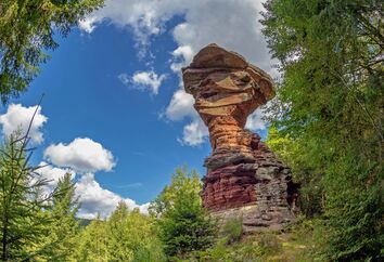 südwestlich vom Hinterweidenthaler Teufelstisch und ist einer von ca. 20 solcher pilzartigen Felsen.