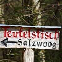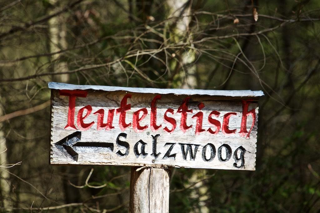 Der Sage nach trieb der Teufel früher sein Unwesen an diesem mächtigen, bizarren Felsenturm am Rande des Salzbachs.