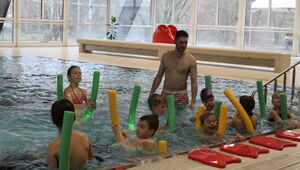 Perfekt für die Kleinen ist ein separates Kinderplantschbecken mit Rutsche. Das Hallenbad verfügt über ein angegliedertes Bistro.