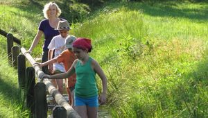 Schuhe aus und los! Auf 1,6 km kann man mit seinen Füßen an 10 Erlebnisstationen allerhand ertasten: weichen Waldboden und raue Baumrinde, gefolgt von einem sandigen Stück mit vielseitigen Balancierstationen. Die Schotterstrecke ist eine echte Herausforderung. Wer schafft alle Grobheitsstufen? Zum Glück kann man jederzeit auf den weichen Rasen ausweichen. Über Wiese und Naturstein führt der Weg weiter durch ein Schlammbett und einen kleinen Bachlauf zurück zum Ausgangspunkt. Für ein Schuhdepot ist gesorgt und auch für die verdiente Stärkung nach der Tour.