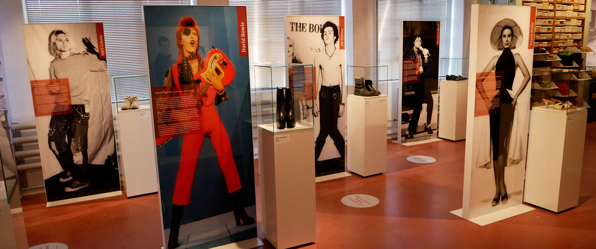 Spannend: die Prominenten-Schuhsammlung u.a. mit Tretern von Angela Merkel, Bastian Schweinsteiger, Michelle Hunziker und Thomas Gottschalk.