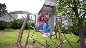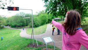 Vom Dynamikum aus führt der Weg vorbei an zahlreichen Außen-Mitmach-Exponaten des Dynamikums hinein in den Park. Hier spritzt Wasser, dort schwingt man wie ein Vogel!