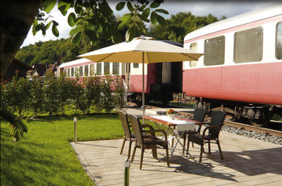 5 Ferienwohnungen in historischen Eisenbahnwaggons, große Ferienwohnung im Bahnhof, barrierefreie Ferienwohnung Lokschuppen.