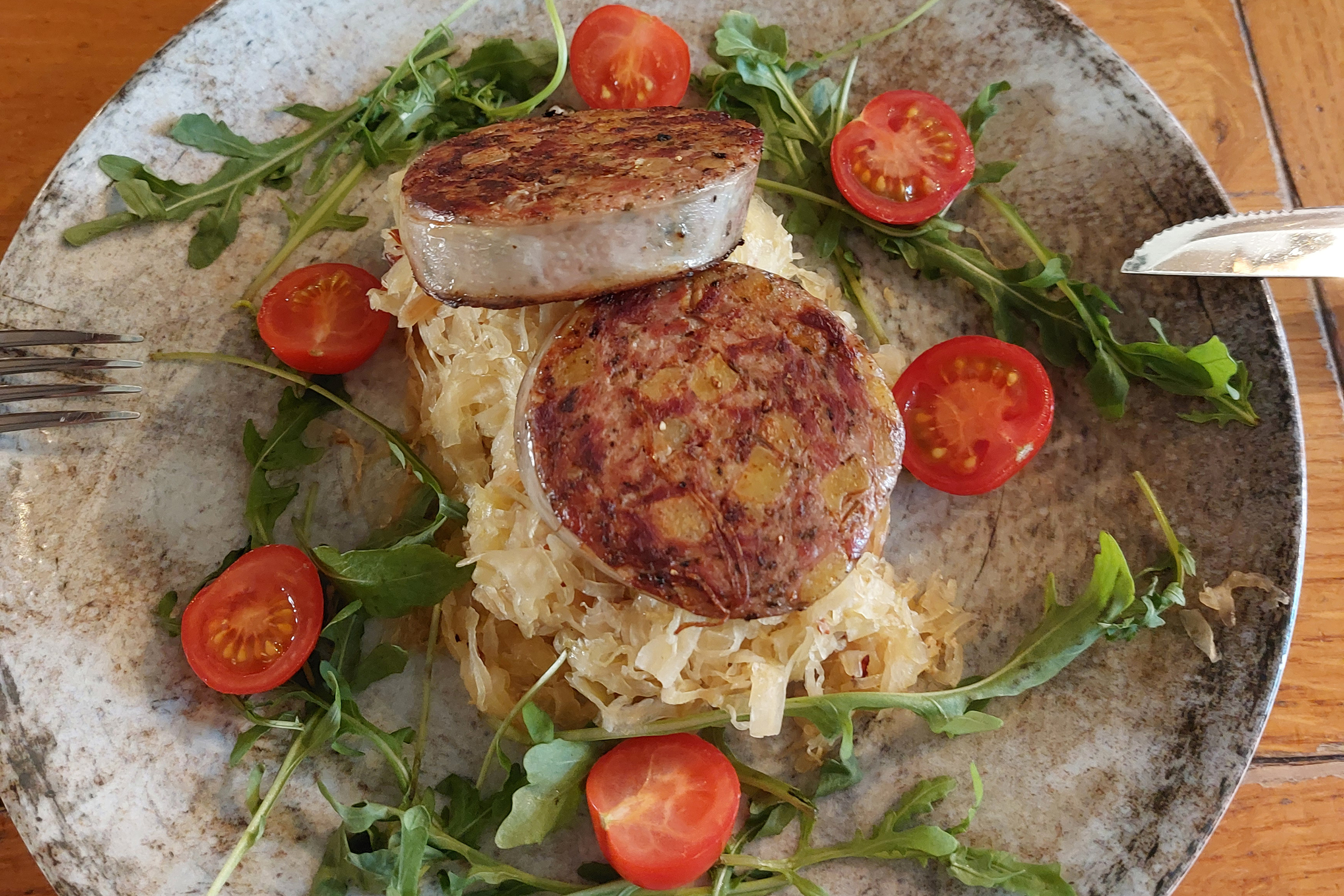 • Schwartenmagensalat mit Pfälzer Bratkartoffeln