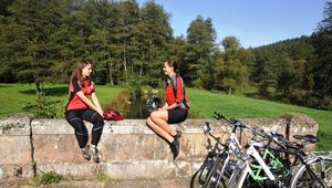 Glanzstück zwischen Rhein und Saar mit weitsichtigen Höhen, majestätischen Wäldern, blinkenden Gewässern. Zur Rast verlocken Orte und Burg "Fleckenstein (F). Nahezu parallel mit der im Wortsinn "Grünen Grenze" zu Frankreich durchstreift der Radweg den Süden der Westpfalz.